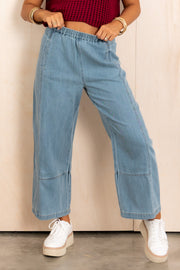 This Jean features an elastic waistband for easy wear and comfortable fit. Designed with side pockets for convenience, its barrel silhouette offers a modern, flattering shape.
