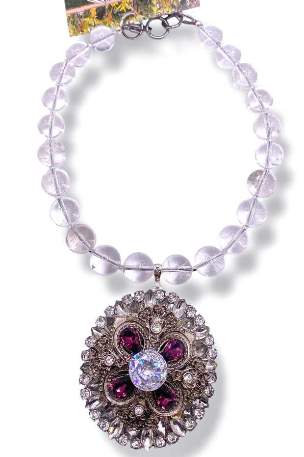 Rockstar In Rome Purple/Quartz/Crystal Brooch White Quartz Stone Necklace