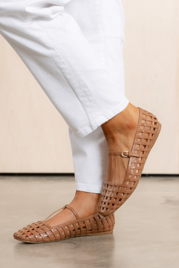 Strips of leather interweave to form the work of art that is RAINS. A versatile stunner, this ballet flat is lightweight and perfect for the warmer days but she can also be styled with crew socks. From office to gallery openings, this shoe is ready for it all.