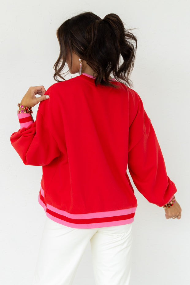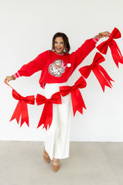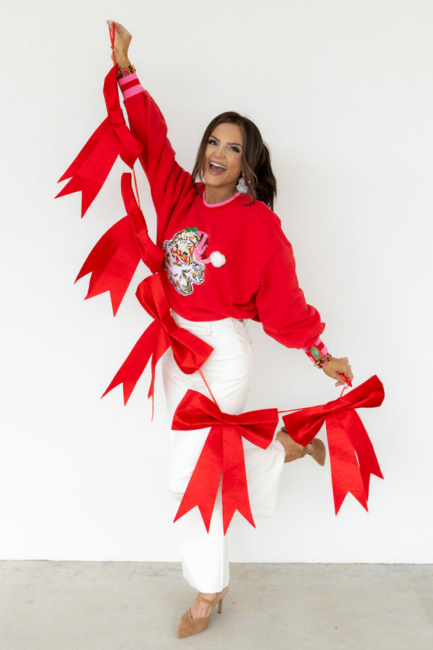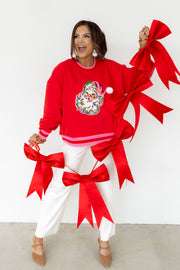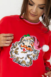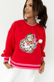 This waist-length sweatshirt features a rounded neckline, long sleeves, and unique custom Santa detailing, perfect for festive comfort and style in holiday seasons.