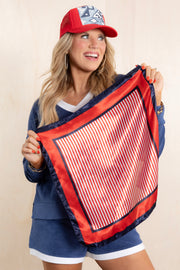 With its striped pattern and silk feel, this scarf adds a touch of elegance to any outfit. Made with quality materials, it's both fashionable and functional. Grab yours today!