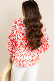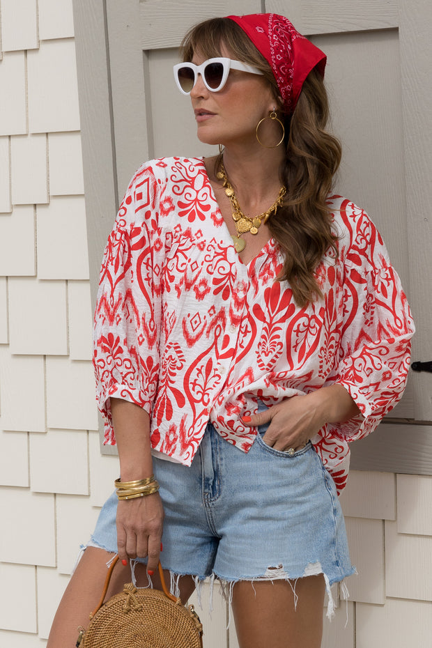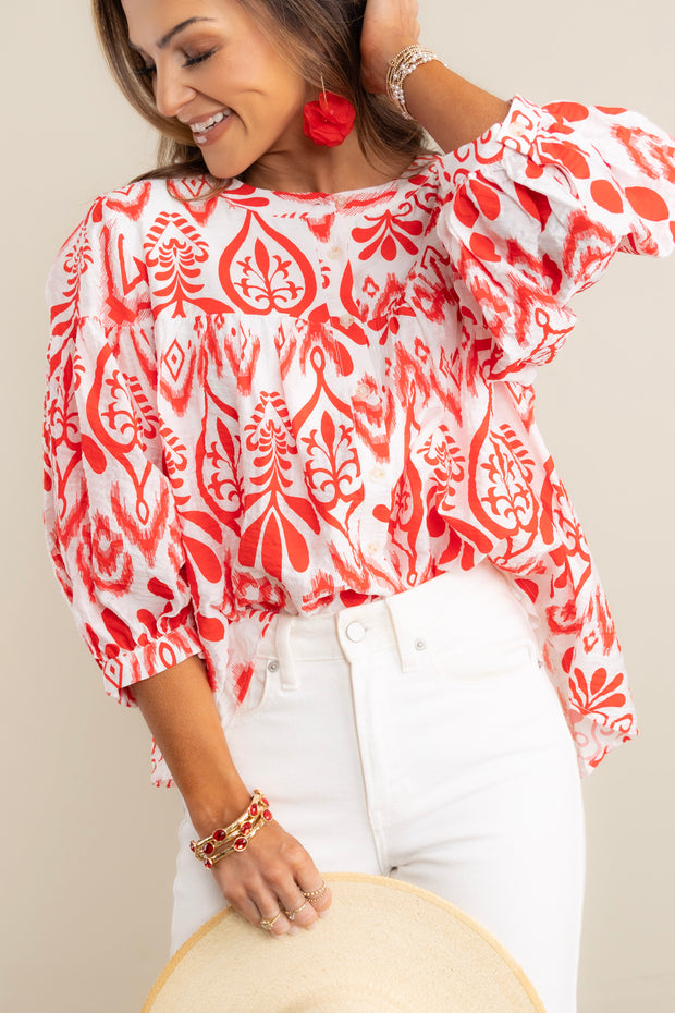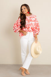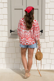Regina Red Printed Long Sleeve Top