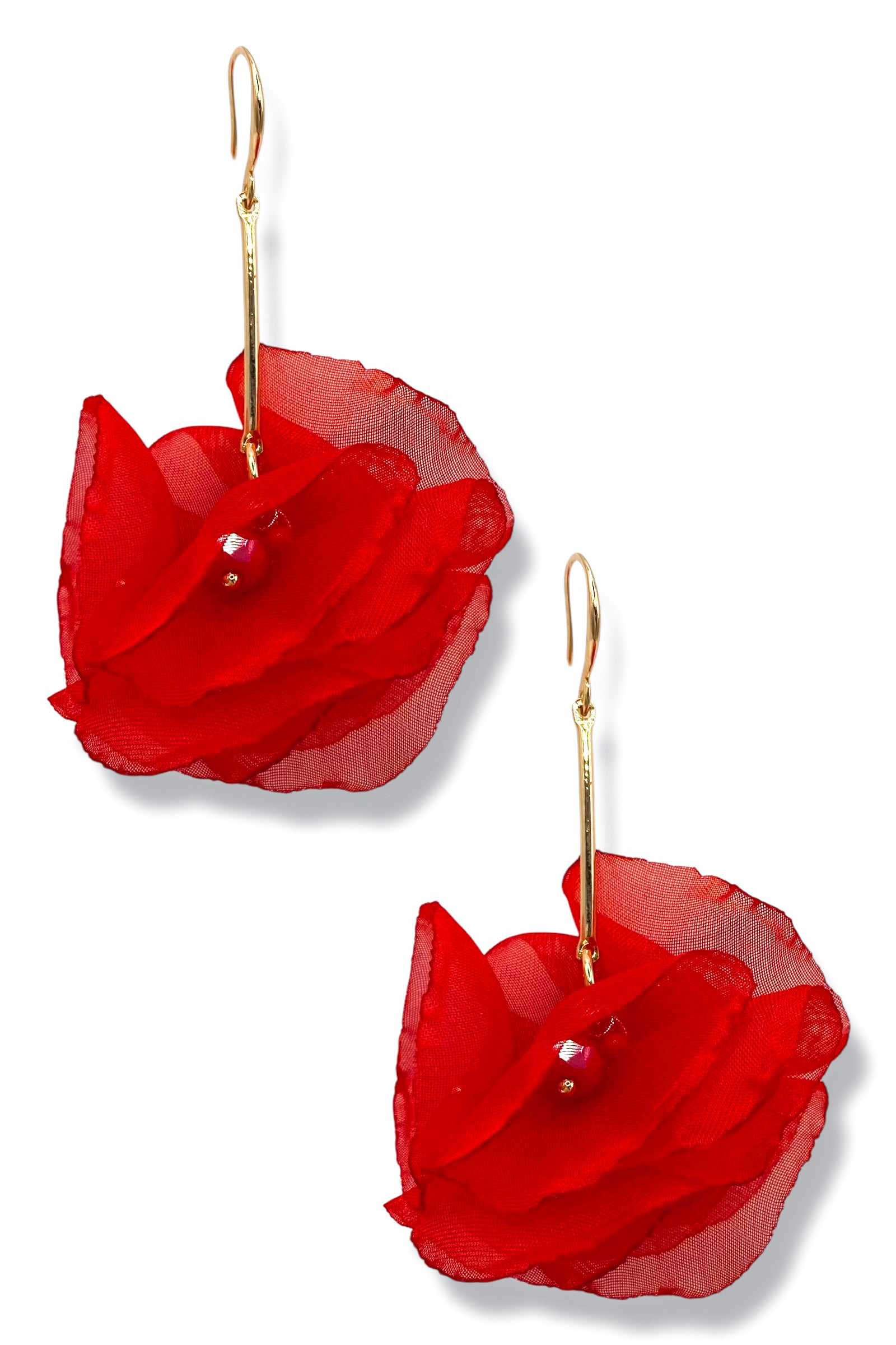 Sherri Red Chiffon Flower Earrings $19.95