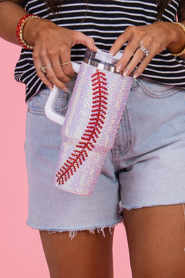 This Ballpark Tumbler boasts a fully rhinestoned 40 oz design, perfect for keeping your drinks cold and refreshing for hours on end. With a sleek and stylish look, you'll love showing off your tumbler while staying hydrated on the go. Upgrade your tumbler game with this sparkling addition.