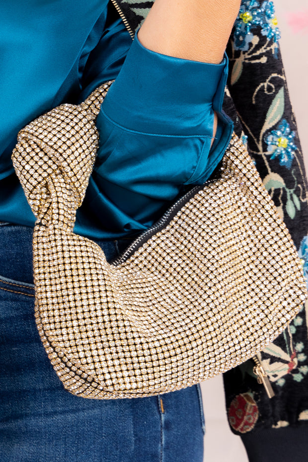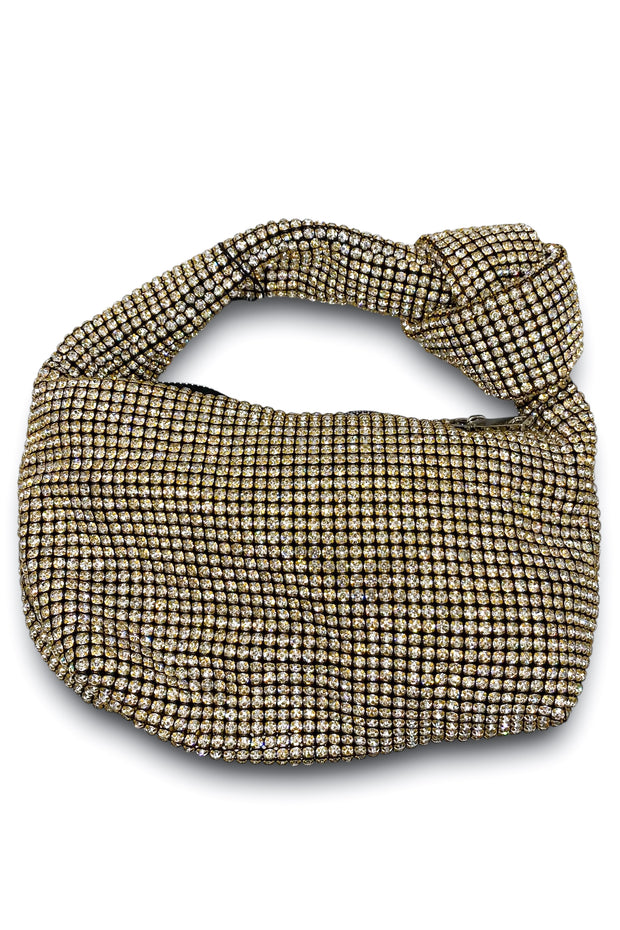 The Rhinestone Monroe Handbag-Black is a fully stoned statement piece, designed to elevate any outfit. Its zipper closure ensures the security of your belongings, while the knotted strap adds a touch of style. Featuring a professional and objective tone, this handbag is a must-have for any fashionista.