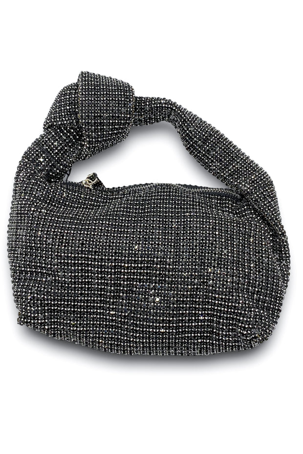 The Rhinestone Monroe Handbag-Black is a fully stoned statement piece, designed to elevate any outfit. Its zipper closure ensures the security of your belongings, while the knotted strap adds a touch of style. Featuring a professional and objective tone, this handbag is a must-have for any fashionista.
