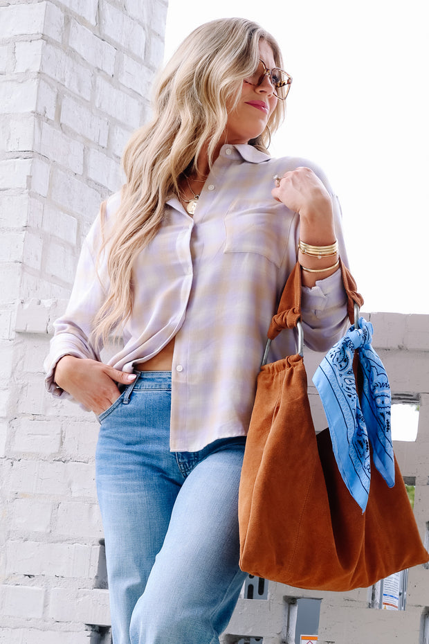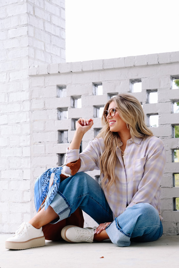 Z Supply River Plaid Lavender Ice Long Sleeve Top