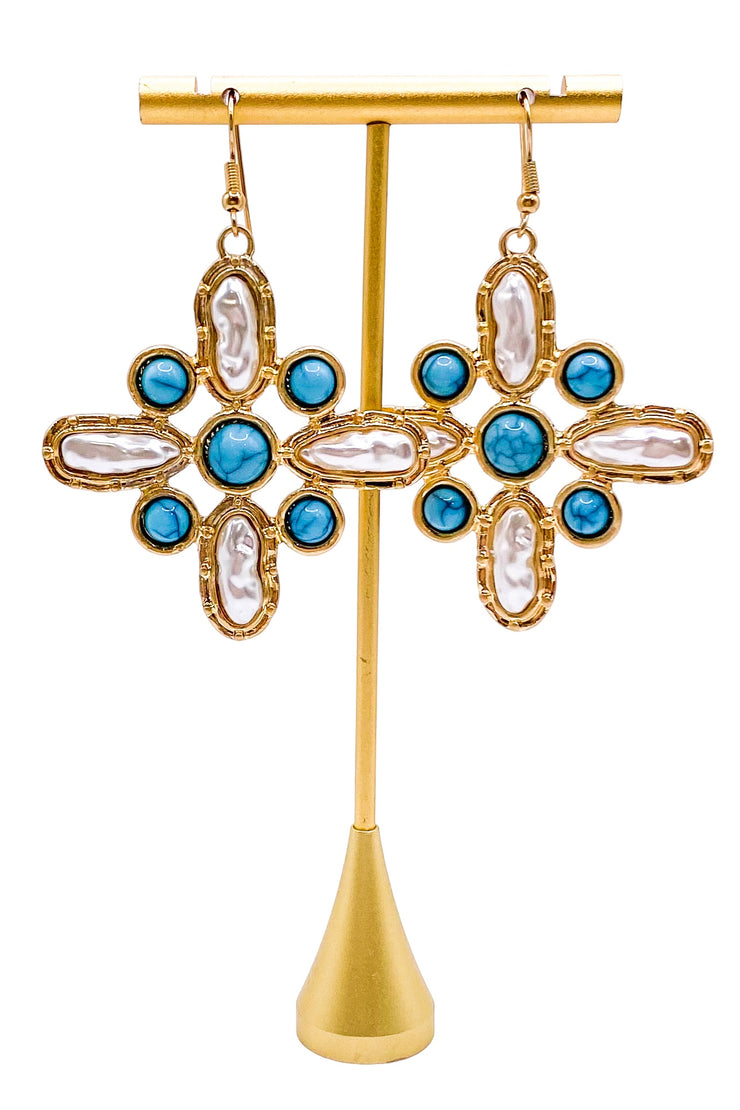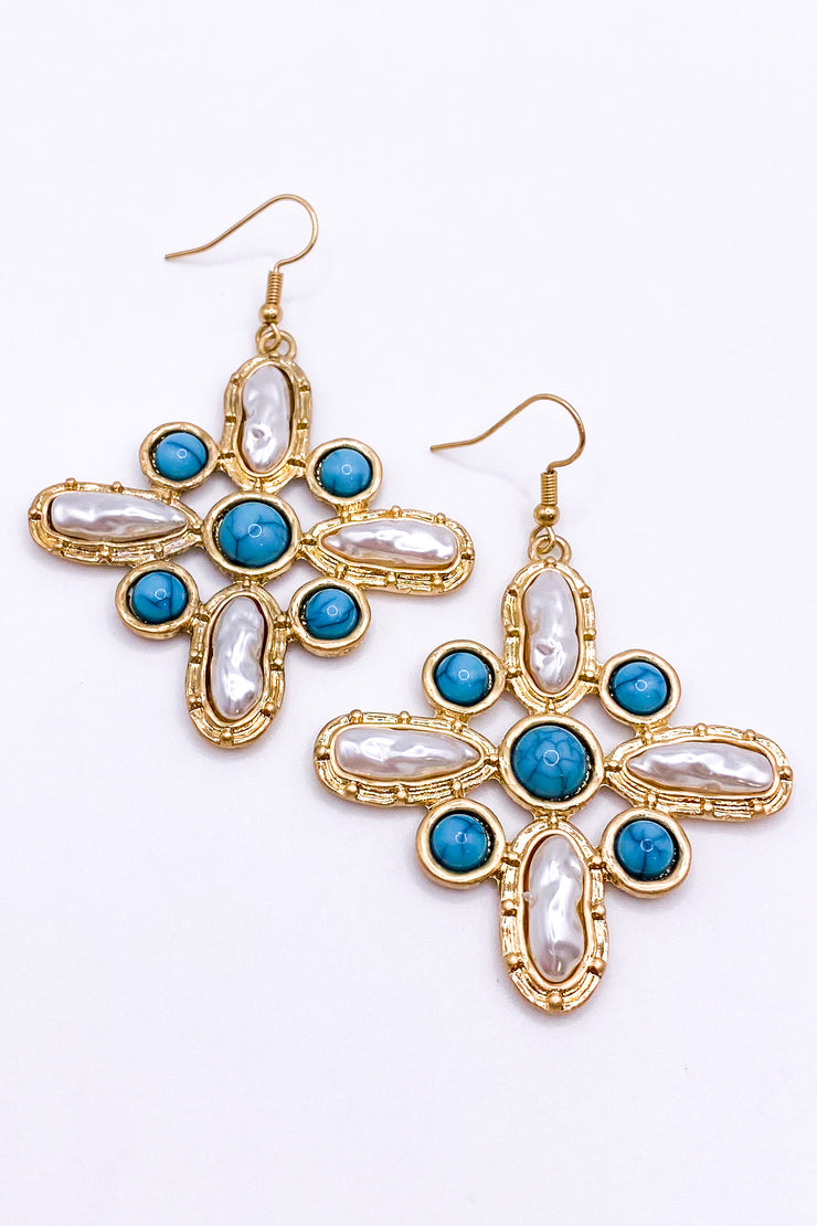 This earring is forsure a moment. Turquoise accessories are so in right now and they literally go with any look. These earrings feature turquoise stones, pearls and gold detailing. Add these to any boho look for the perfect look!