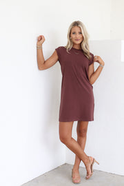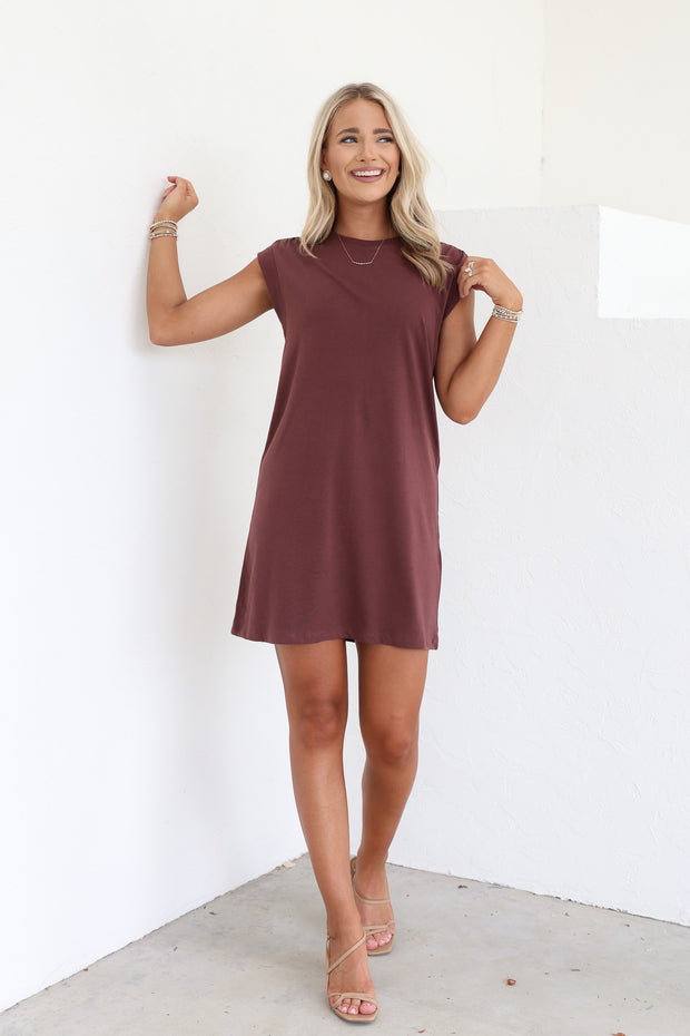 This mini dress features a rounded neckline and a sleeveless design, providing a comfortable and breezy fit. Its short length makes it perfect for warm days or casual outings, combining simplicity with effortless style.