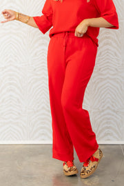 This Scuba ruby Wide Leg Pant features an elastic pull-on waistband for comfort, side pockets for convenience, and a flattering wide-leg silhouette for effortless style.
