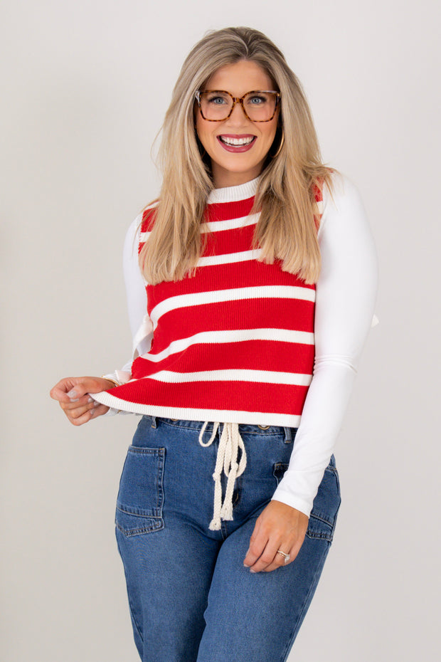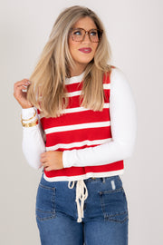 This Tank Top offers a comfortable rounded neckline and a waist-length fit. Its striped print adds timeless style, while the adjustable tie sides provide a customizable silhouette. Perfect for everyday wear, this tank combines simplicity with a subtle detail to enhance your outfit.