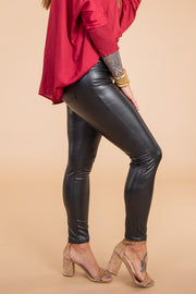Elevate your everyday style with these Runway Faux Leather Leggings. Crafted from silky-smooth faux leather and featuring faux front pockets and an elastic waistband for maximum comfort, this timeless piece will bring a touch of sophistication to your wardrobe.