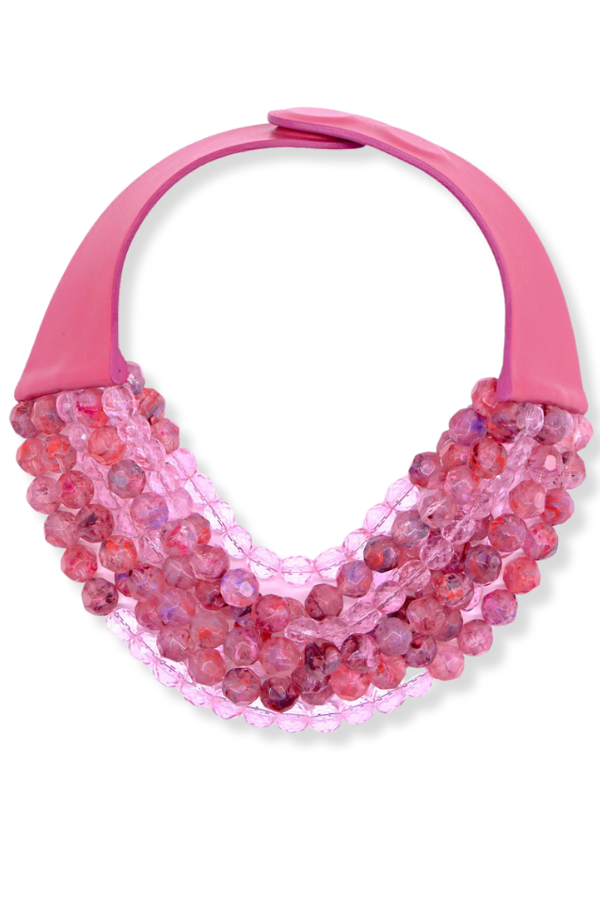 - Multi-strand necklace with translucent bubble shaped beads