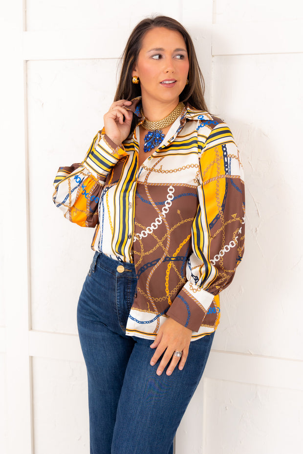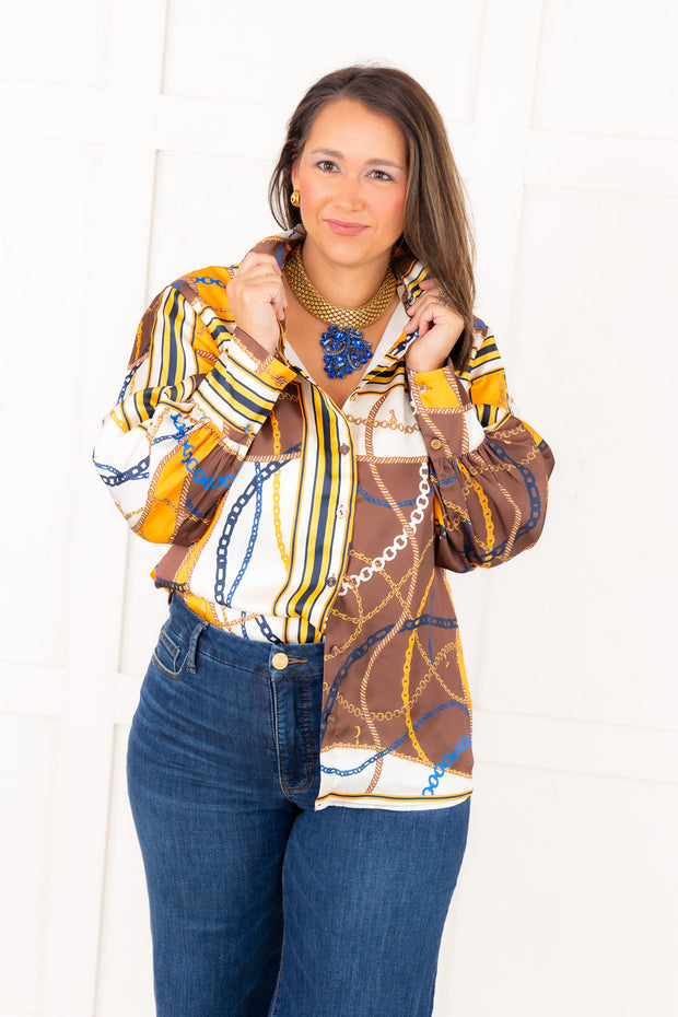 Looking for an elevated and stylish button up? Then the Sadie top is your perfect fit! The Sadie features a pocket on the left chest and a scalloped trim detail on the sleeve, pocket, and collar for an extra feminine touch.