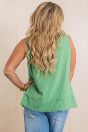 This Oatmeal Sleeveless Frey Hem Top is a must-have for any wardrobe. With its rounded neckline and sleeveless silhouette, it provides a versatile and comfortable style that can be dressed up or down.