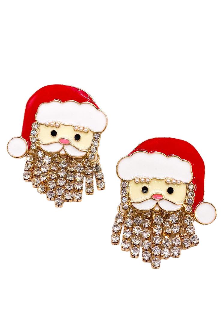 The Headed To Town Earring features a sleek santa head design with a bejeweled beard for an elegant and festive look. These lightweight, earrings are the perfect finishing touch to any holiday outfit.