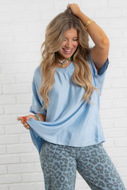 The v-neckline and short sleeves provide a comfortable and stylish fit, while the satin material adds a touch of luxury. Perfect for any occasion, this waist-length shirt will effortlessly elevate your style.