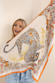 Featuring a bold leopard print and a unique triangle shape, this scarf is sure to add a touch of jungle-inspired style to any outfit. Expertly crafted and designed to make a statement, this scarf is the perfect addition to your wardrobe.