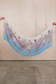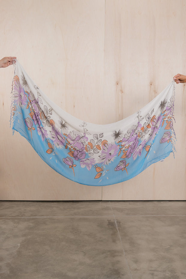 Its beautiful flower print design and fringe detailing will elevate any outfit, while its lightweight fabric provides comfort and versatility. Perfect for adding a pop of color and style to any ensemble.