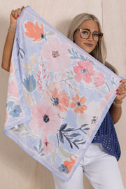 A vintage-style square scarf featuring a beautiful floral bloom print. Made of silky satin, this scarf adds a touch of elegance and sophistication to any outfit. Perfect for any occasion, it is sure to become a staple in your wardrobe.