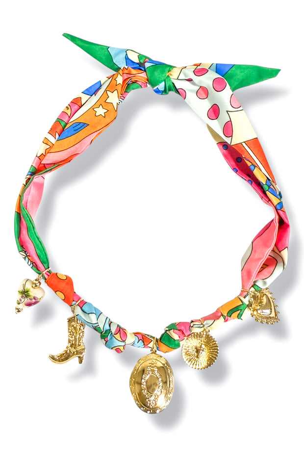 This necklace combines the softness of a scarf with the delicate touch of charming accents. Perfect for adding a subtle, stylish detail to any outfit, making it an easy accessory to wear every day.