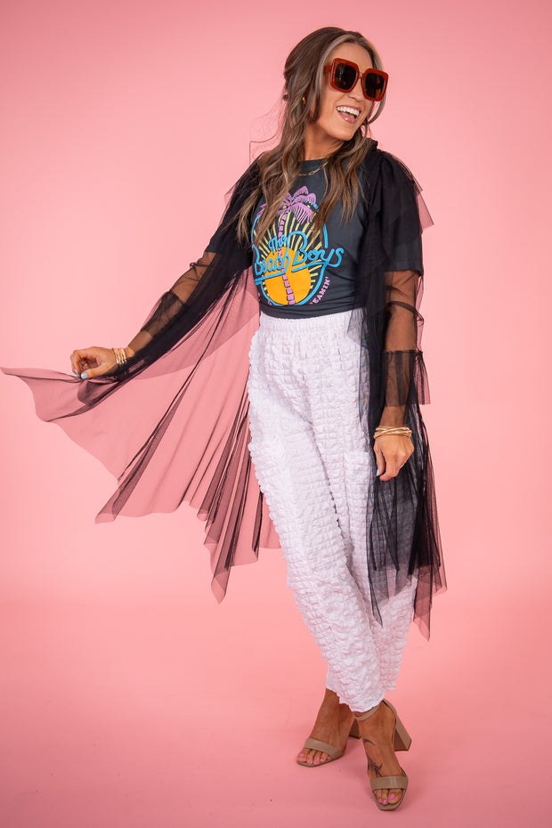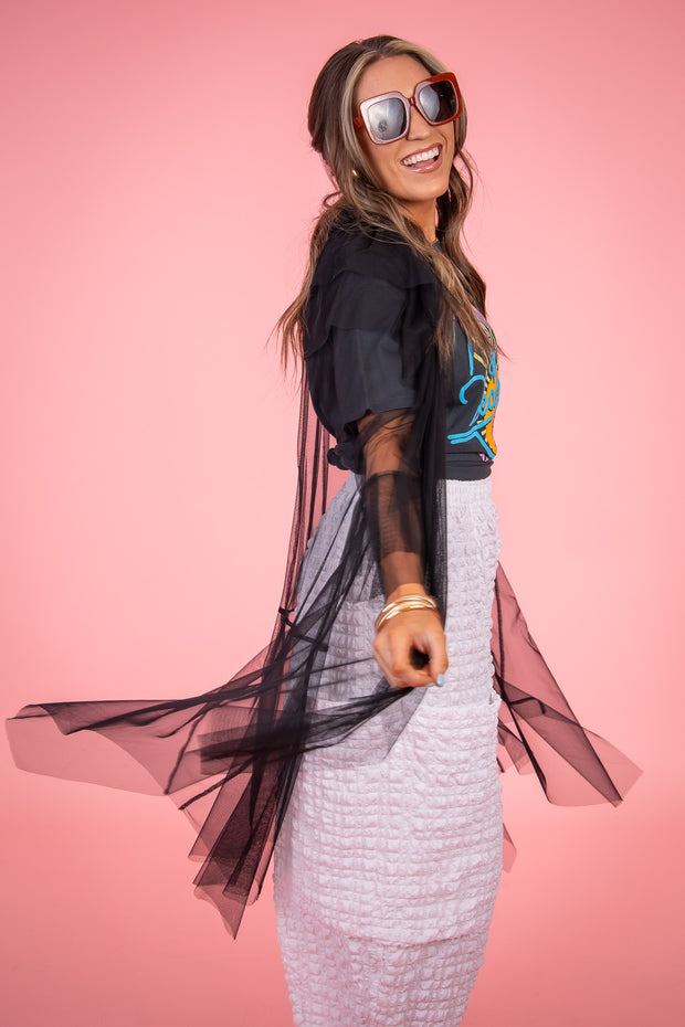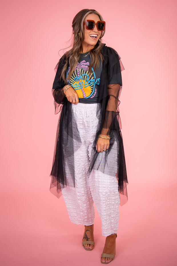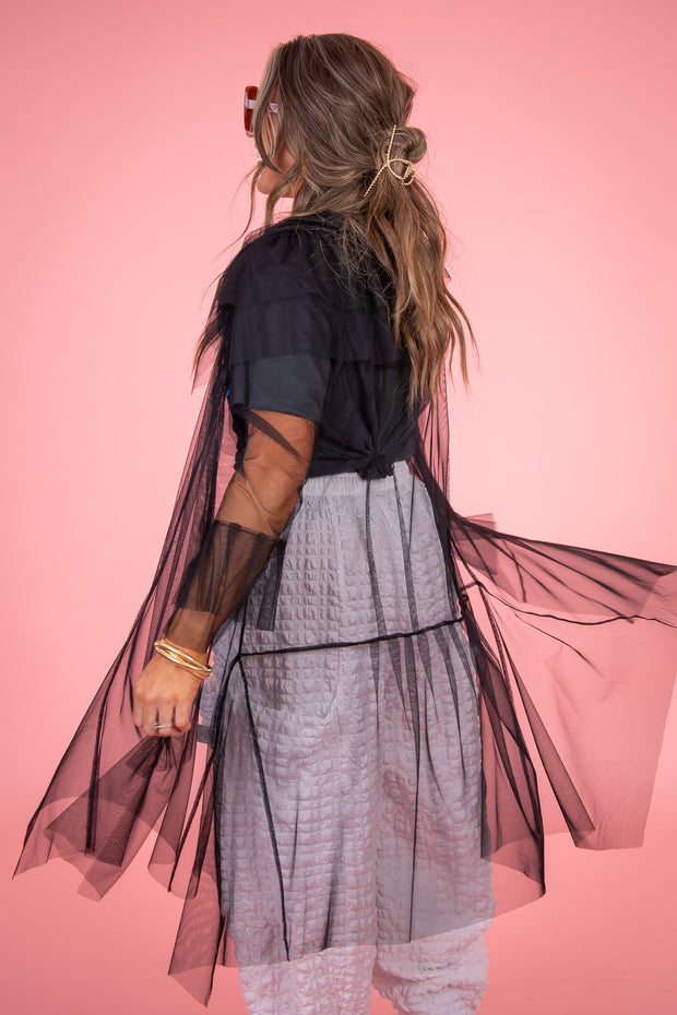 Introducing the Make It Easy Sheer Kimono. Made from lightweight and sheer material, this stylish kimono features an open front design and delicate ruffle detailing throughout. Perfect for layering, it adds a touch of elegance to any outfit.