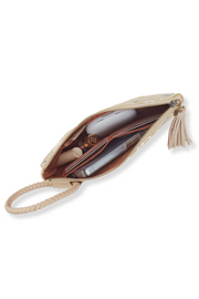 A handcrafted clutch with a circular handle and a tassel that moves with you. No spills or slips here – this clutch is secured with a top zip closure. Sheila Clutch has a sturdy circular handle so you don't have to juggle.