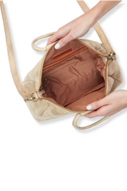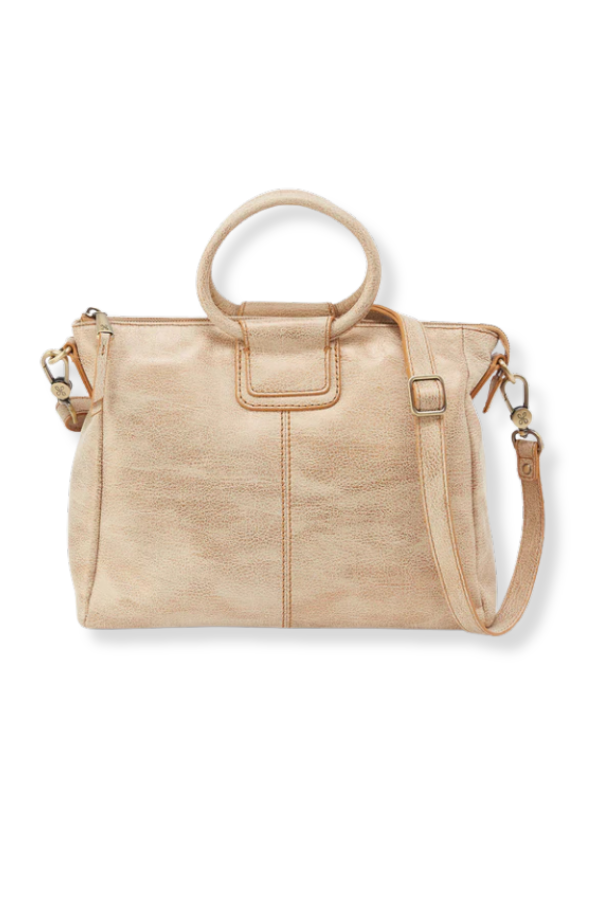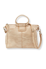 The Sheila Medium Satchel Metallic Gold is by the brand HOBO. The Sheila Medium Satchel Metallic Gold is a medium satchel with a removable strap. The Sheila Medium has a back slip pocket for your phone, a spacious interior with pockets for planning and plotting, a removable strap, and circular top handles.