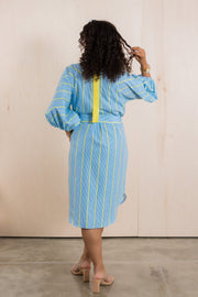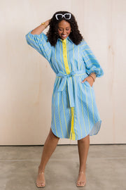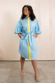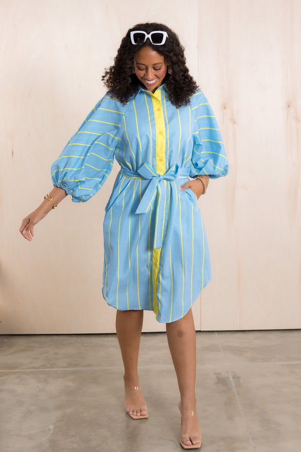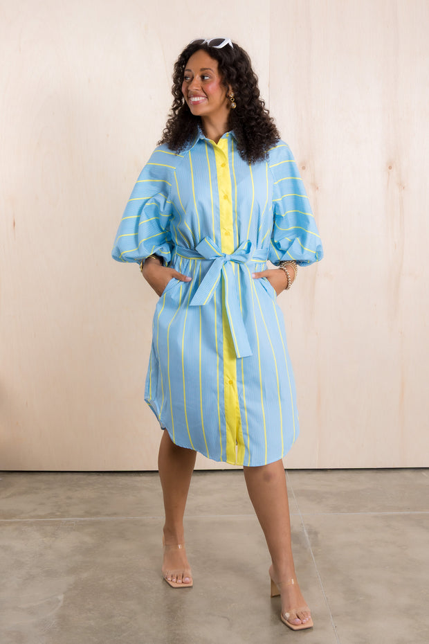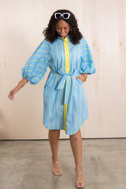 Expertly designed with a top collar and button down feature, this Dress is a must-have for any wardrobe. The tie waist creates a flattering silhouette, while the comfortable and breathable material ensures all-day comfort. Available in one size, this dress is a versatile and stylish addition to any outfit.
