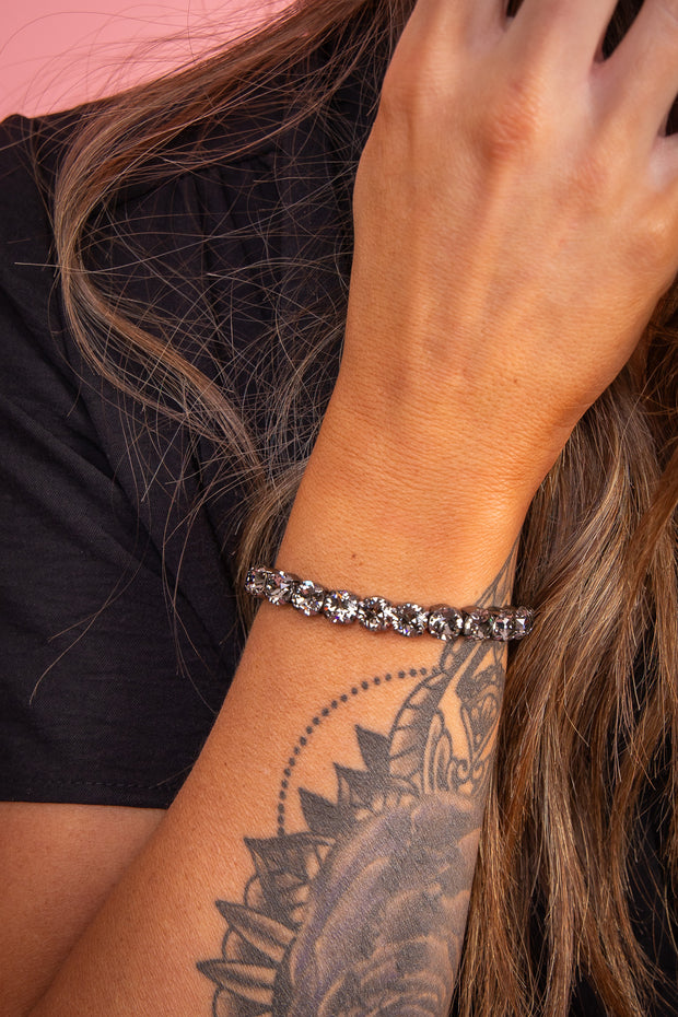 A modern take on a classic style, the Sienna Stretch Bracelet features a line of crystals on a sturdy jewelers' filament, stretching to fit most wrists comfortably, without the hassle of a clasp!