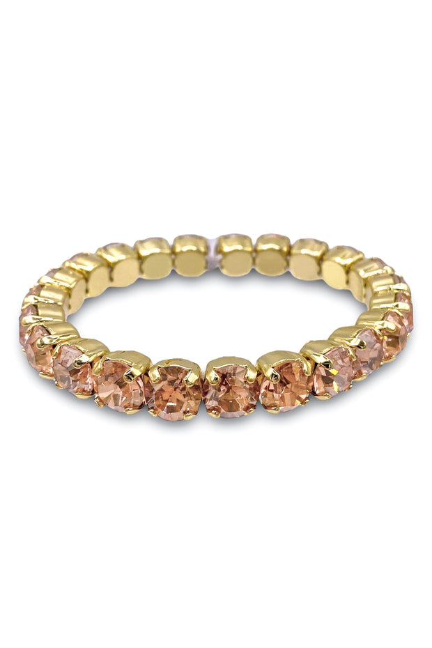 A modern take on a classic style, the Sienna Stretch Bracelet features a line of crystals on a sturdy jewelers' filament, stretching to fit most wrists comfortably, without the hassle of a clasp!