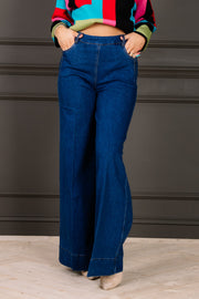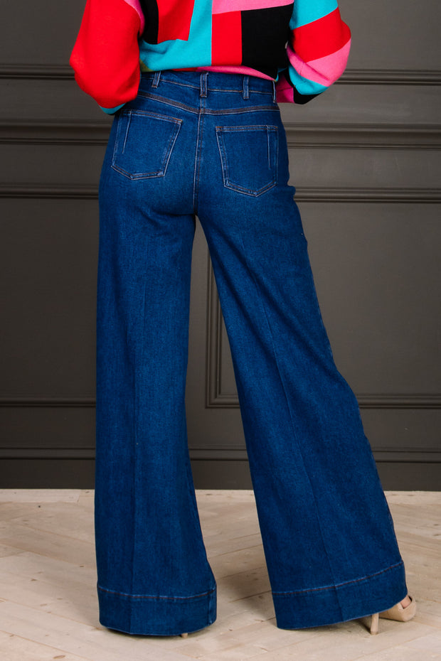 Elevated high-rise silhouette meets effortless wide-leg styling in this dark wash denim. A modern take on a classic cut that flatters and moves with you.