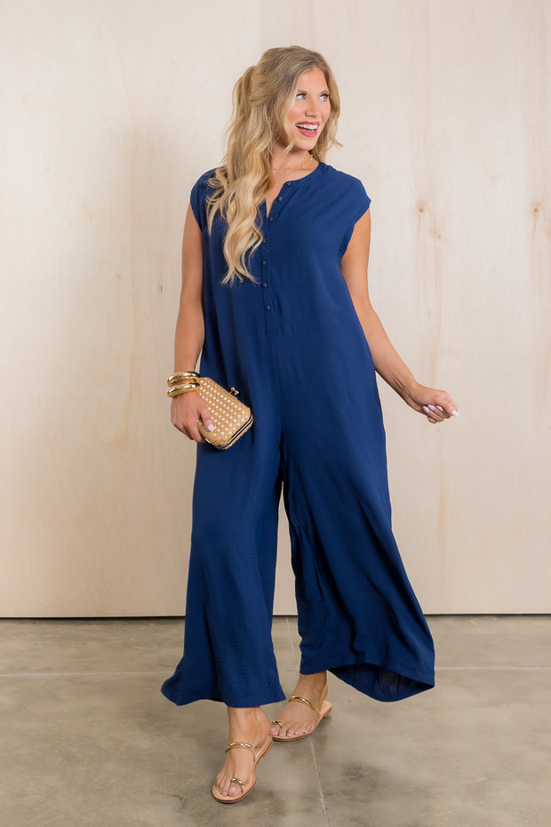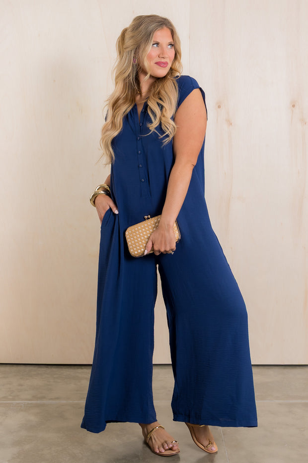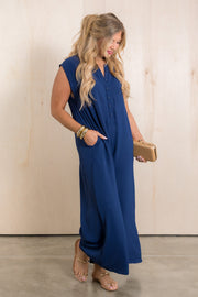 Made with breathable and comfortable material, it features a button down bust and convenient side pockets. The navy blue color adds a touch of sophistication to your wardrobe. Expertly crafted for a flattering fit.