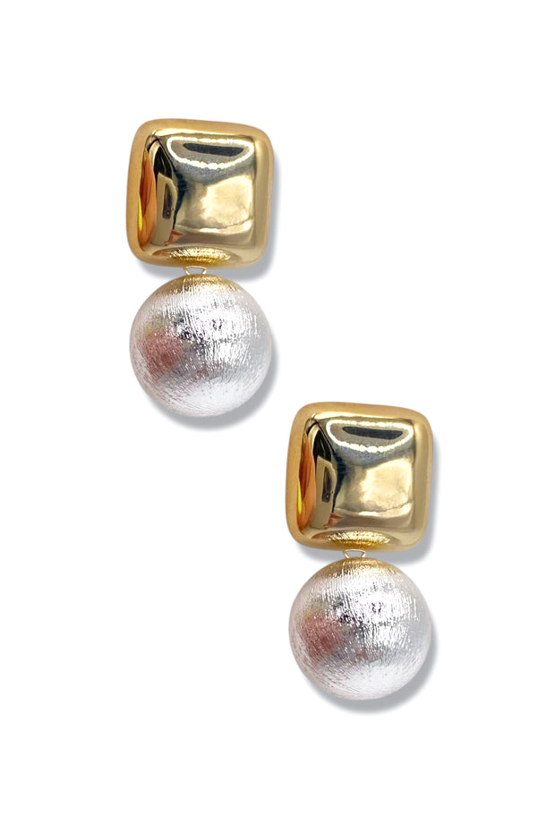 Crafted with both square and ball-shaped designs, these earrings are a perfect blend of bold and delicate. Elevate your style with these pieces, adding a touch of sophistication to any outfit.