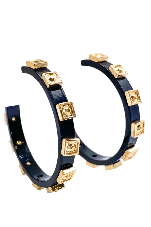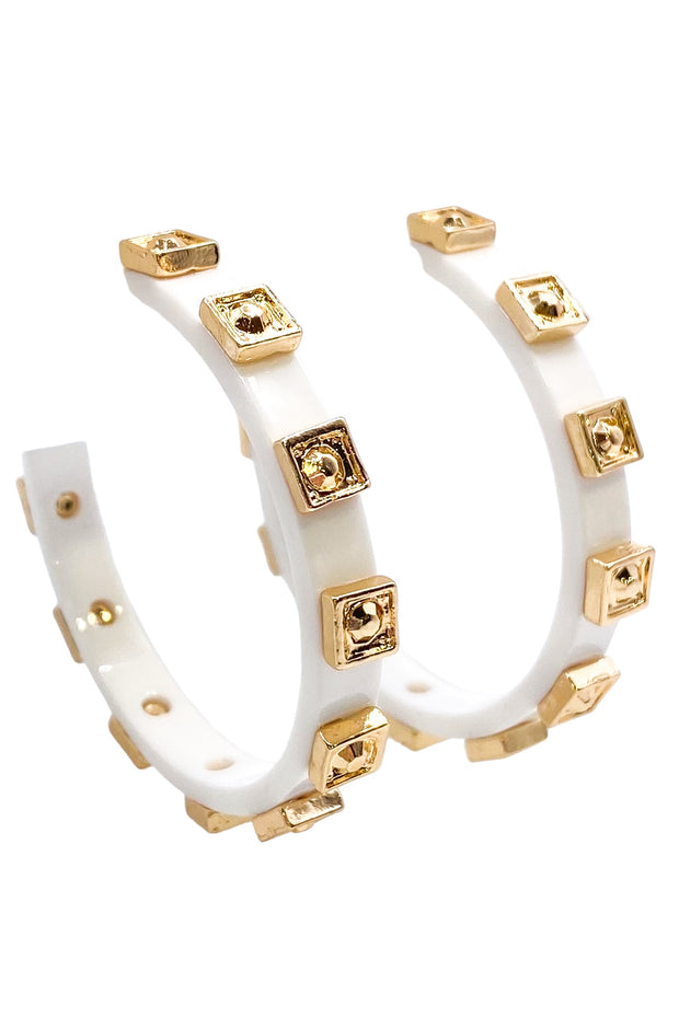 The Start The Show Hoop is a stylish and versatile accessory for any outfit. Its lightweight design makes it comfortable to wear all day, while the gold square detailing adds a touch of elegance. Perfect for a night out or a casual day look.