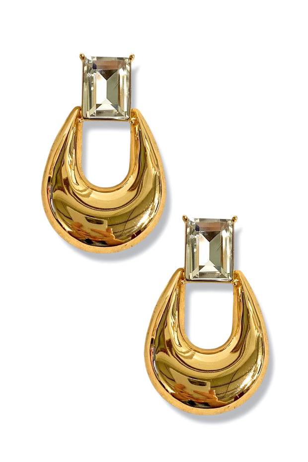 Enhance your outfit with our Pretty Thing Earrings. The stunning rhinestone detailing and delicate gold hoop at the bottom add a touch of elegance to any look. Elevate your style with these must-have accessories.
