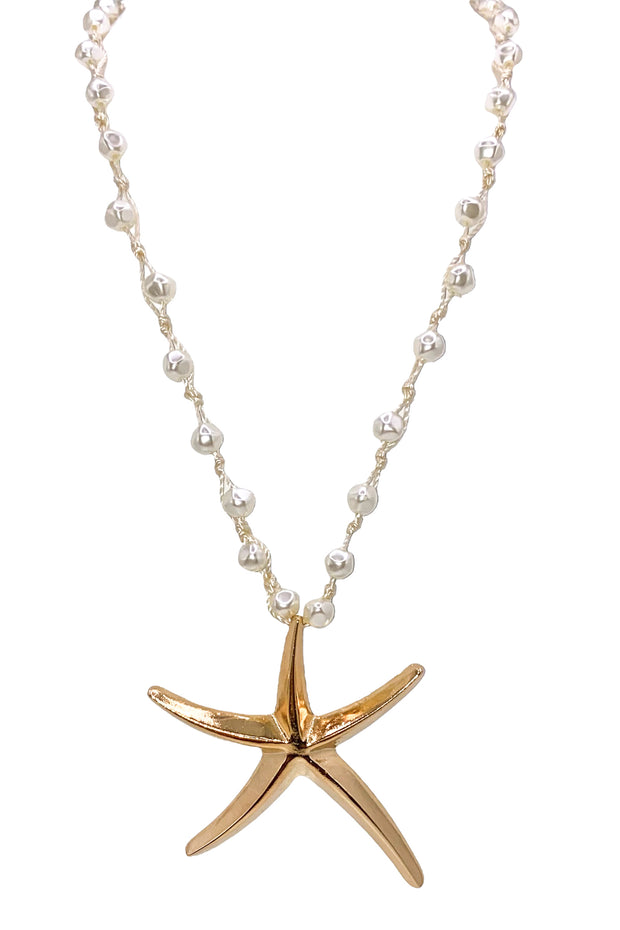 This elegant necklace features a stunning starfish pendant on a delicate pearl chain. Crafted with quality materials, it adds a touch of seaside charm to any outfit. Perfect for nature lovers and beachgoers, this necklace is a must-have addition to any jewelry collection.