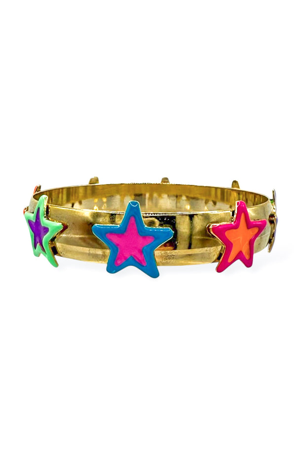 Rock the Starnise Bracelet and show off your edgy style! It's sleek and modern style is adjustable, hand-painted enamel and adorned with pops of color. With an inner circumference of 20 cm, this bangle comfortably fits most wrists.