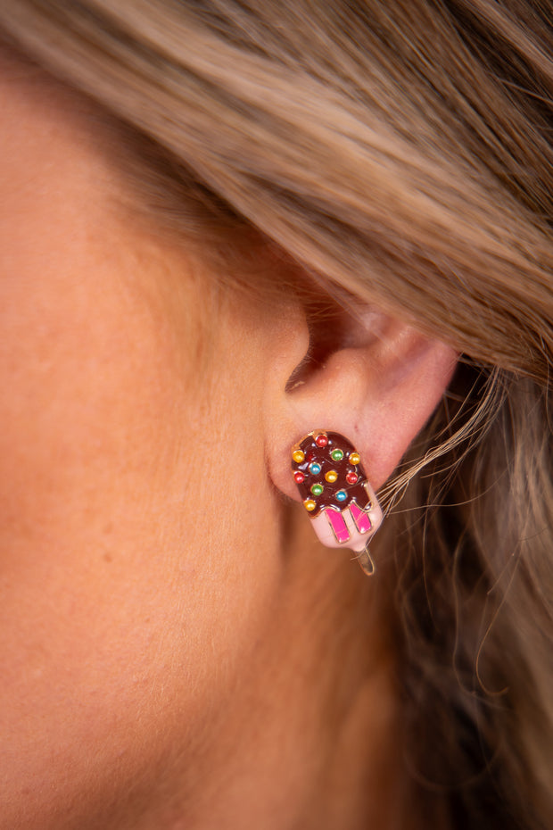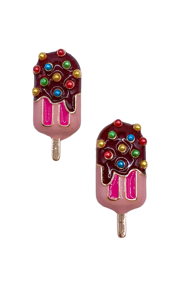 Indulge in a delectable treat with the Something Sweet Stud. These realistic ice cream on a stick earrings feature intricate detailing that will add a touch of fun to any outfit. Crafted with care, these studs are a delicious addition to your jewelry collection.