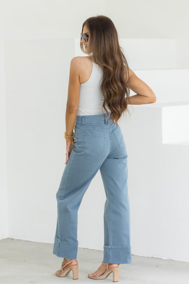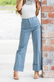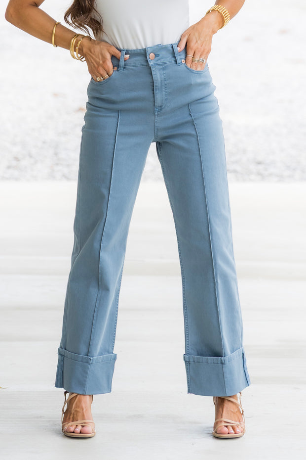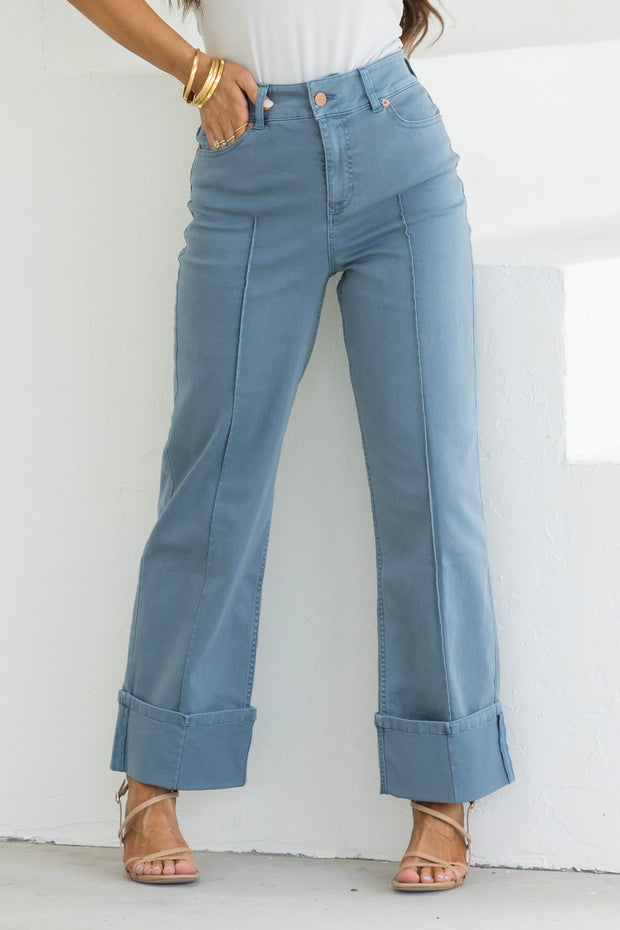 The epitome of fashion with this straight leg jean in seasonal colors, featuring a high-rise fit and a clean, wide hem, wear it cuffed or long for a sophisticated silhouette. Made from a comfortable cotton blend with a hint of stretch and front pleating, these color denims offer a perfect blend of style and functionality, versatility in every outfit.