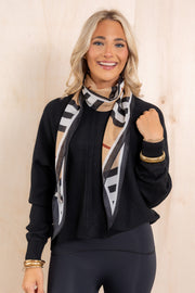 This scarf features a stylish stripe and diamond print in a versatile shape, perfect for adding a subtle touch of pattern to any outfit. Lightweight and easy to wear, it’s an ideal accessory to elevate your everyday look.