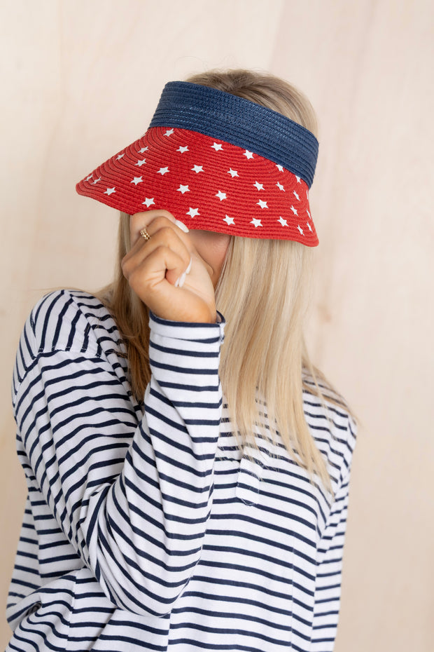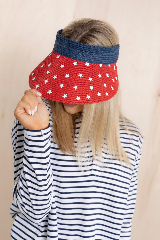 A must-have for any patriotic occasion! This roll-up visor features an adjustable elastic band for a customizable fit. With a bold American flag design, show your love for your country while staying cool and protected from the sun