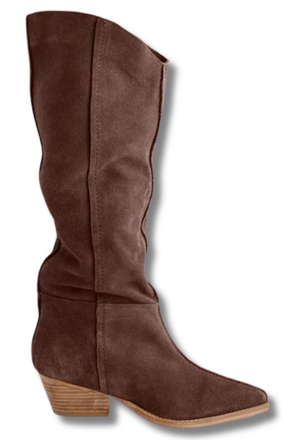Step it up in these beautiful suede boots featured in a slouchy style with a pointed toe and stacked heel. These are going to be a fall and winter staple. Style these with an oversized sweater dress and you will have the perfect look.