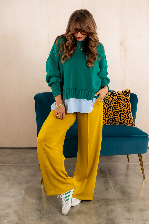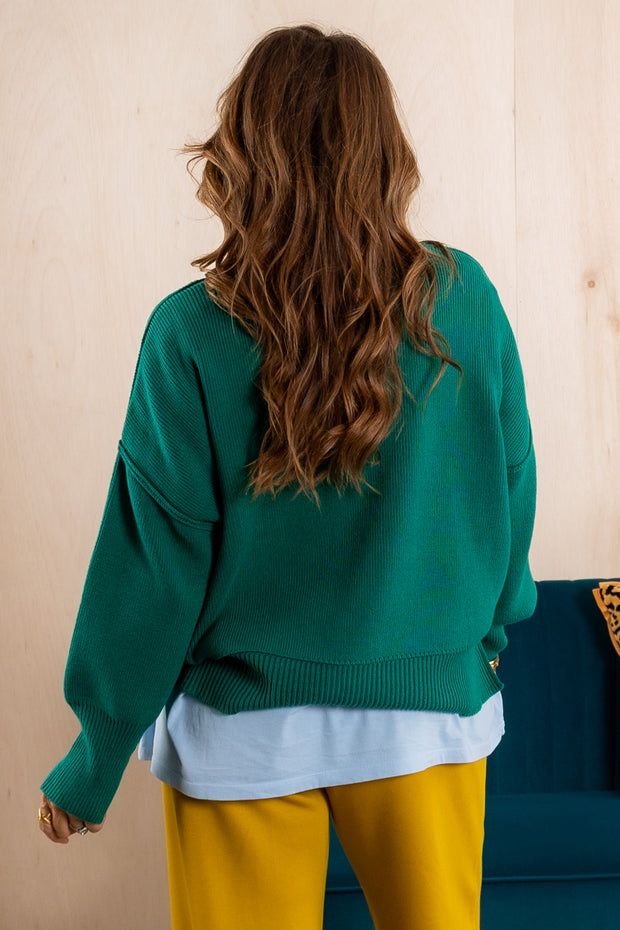 This forest green long sleeve sweater is made from butter-soft material, offering comfort and warmth. Its versatile design makes it perfect for any occasion.