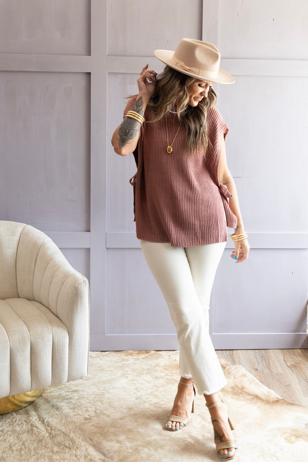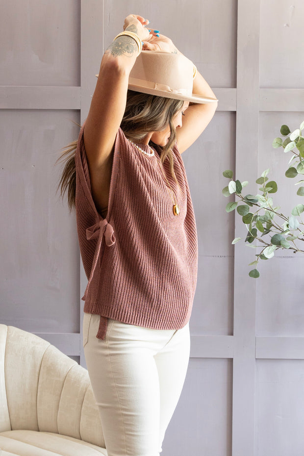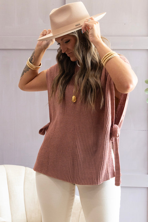 With a rounded neckline, tie side sleeves, and a soft kitted material, the Go Your Own Way Sweater offers both style and comfort. Perfect for any occasion, this sweater is versatile and on-trend. Stay warm and chic with this must-have wardrobe essential.