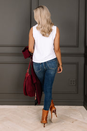 The Tammy Sleeveless Tank combines style and comfort with its ruffled neckline and stretchy material. Its sleeveless silhouette offers effortless versatility, making it a must-have for any wardrobe. Stay cool and chic in this expertly designed tank.