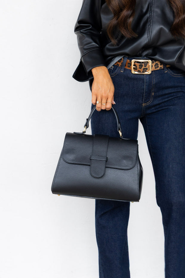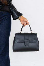 Crafted from Italian leather and includes a flexible top handle and a detachable, adjustable shoulder strap for crossbody wear.