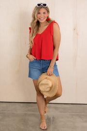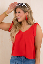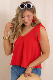 Effortlessly elevate your summer style with this Tie Strap Sleeveless top. The tie sleeveless straps and v-neckline add a touch of femininity, while the waist length creates a flattering silhouette.