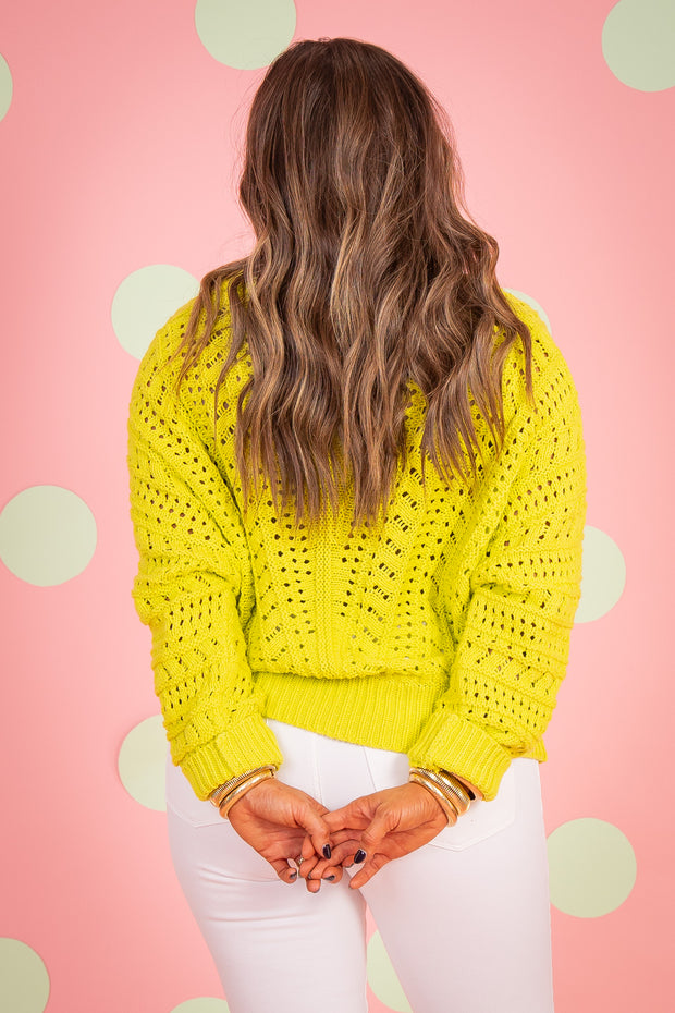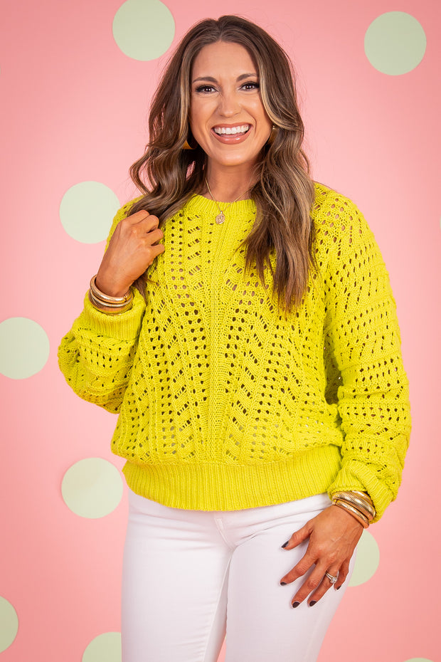 The Anything Goes Sweater is a must-have for your wardrobe. Its rounded neckline and long sleeves provide both comfort and style. Made from high-quality crochet material, this sweater is perfect for any occasion. Stay warm and stylish with the Anything Goes Sweater for Spring.