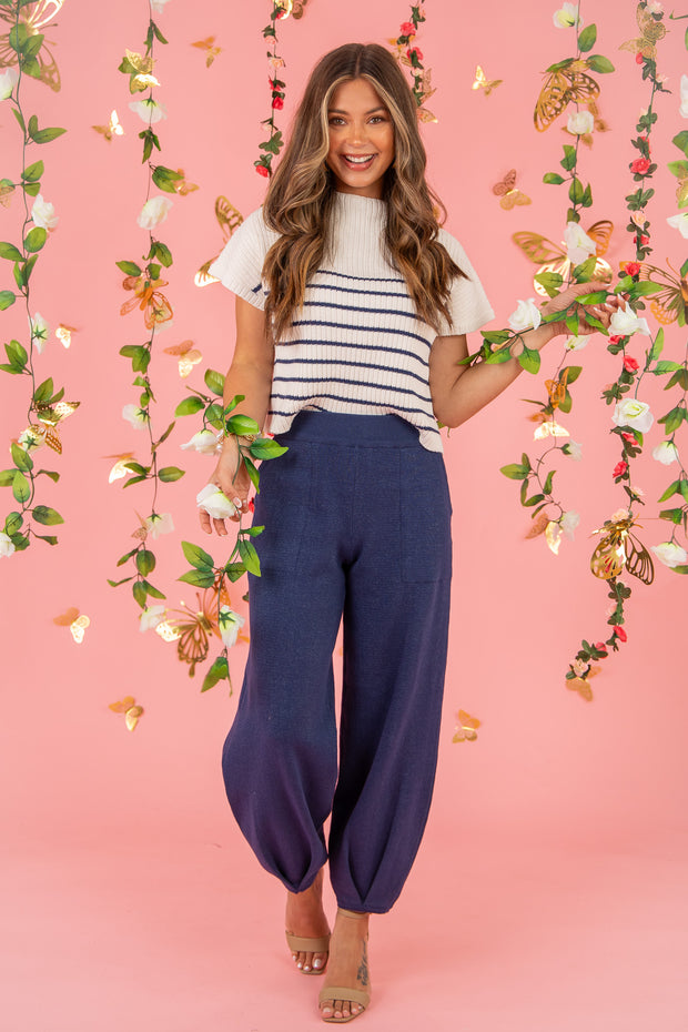 Crafted from a soft sweater material, the Nantucket Top boasts a stylish striped print and a cropped length for a modern look. Its sleeveless silhouette and rounded neckline offer a comfortable fit, making it a versatile and chic addition to any wardrobe.